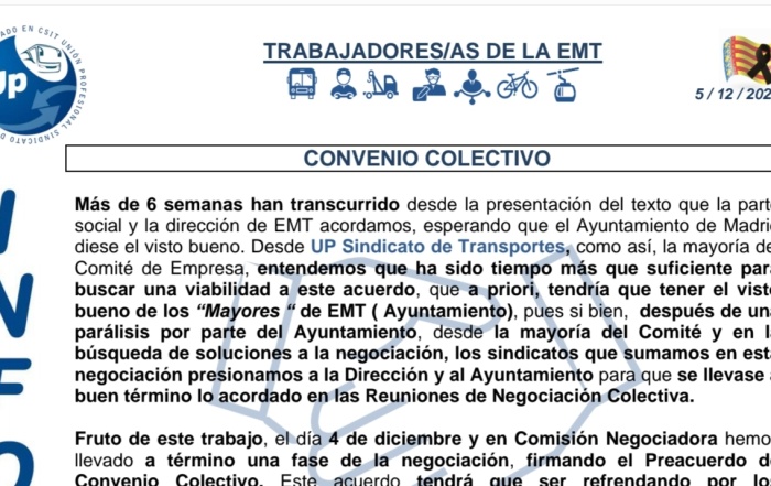 Condolencias por lo sucedido, agradecido por la solidaridad de la plantilla de EMT. Sobran las ...