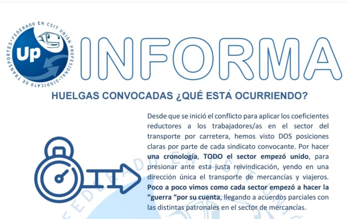 Os informamos sobre la Huelga del Transporte en España. Descarga el PDF UP INFORMA Huelga ...
