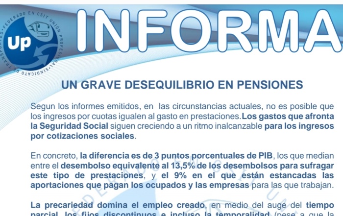 Nuestras pensiones y su desequilibrio económico. Descarga el PDF UP INFORMA Un grave desequilibrio en ...