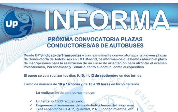 UP INFORMA Curso pruebas de acceso EMT de Madrid