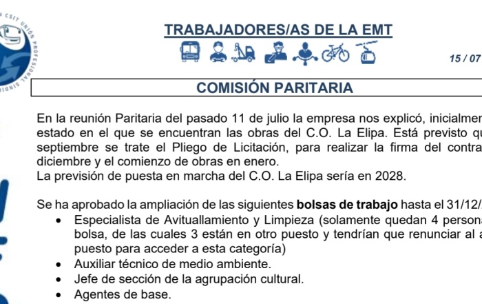 Os informamos de la problemática existente en la Tasa de Reposición en la EMT de ...