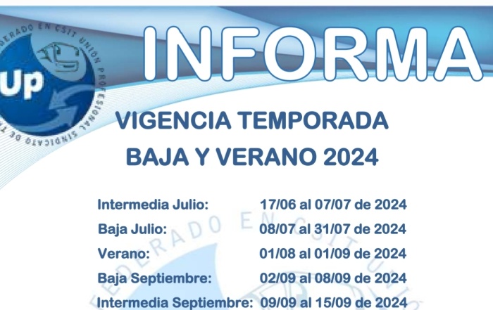 UP INFORMA Vigencia temporada baja, intermedia y verano 2024
