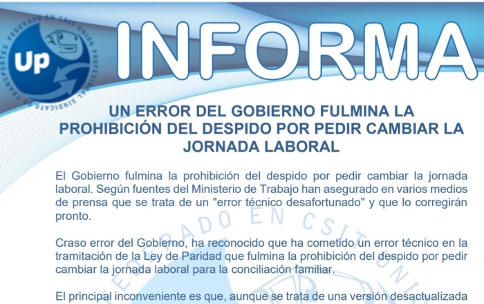Un error en la redacción de la ley posibilita un despido al trabajador, será subsanado ...