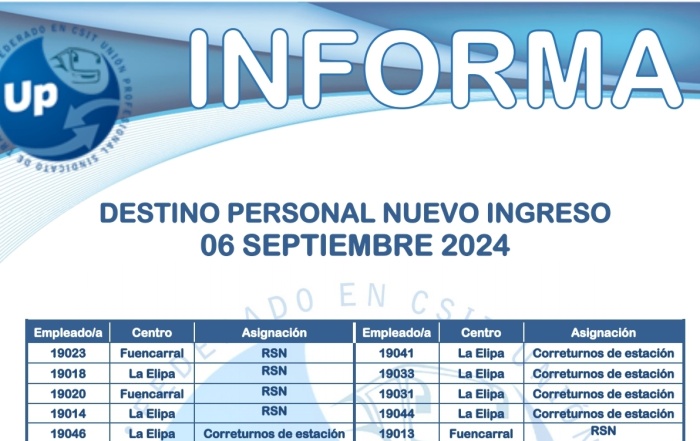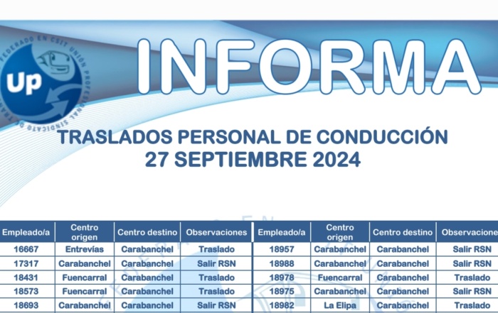 ¡Comprueba tu traslado! Descarga el PDF UP INFORMA Traslados Personal Conducción 27-09-24 UP SINDICATO DE ...