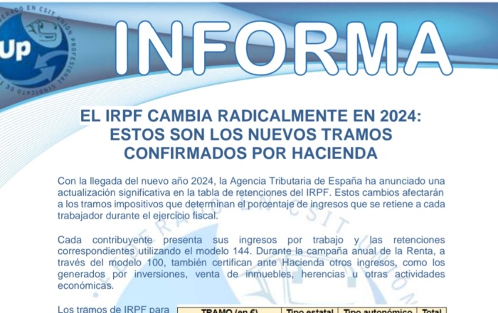 Os informamos de loa nuevos tramos en el IRPF 2024 Descarga el PDF UP INFORMA ...