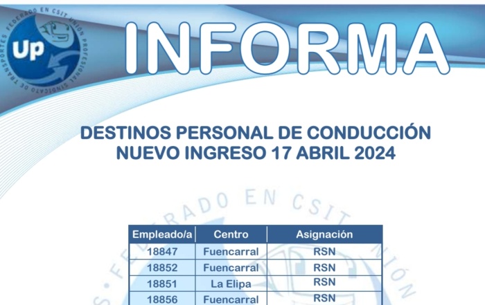 UP INFORMA Traslados Personal Conducción 17 abril 2024