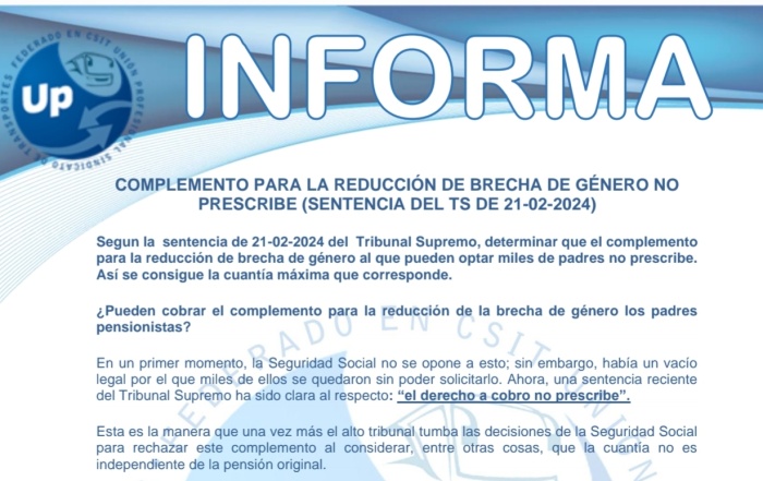 Importante lectura para conocimiento de nuestros afiliados/as. Descarga el PDF UP INFORMA Complemento Genero No ...