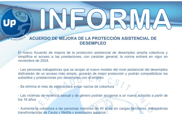 Os informamos de los acuerdos conseguidos. Descarga el PDF UP INFORMA Acuerdos desempleo UP SINDICATO ...