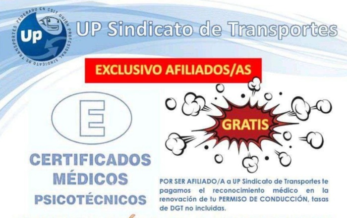 Por ser afiliado/a a UP Sindicato de Transportes, al corriente de los pagos de la cuota, te pagamos el reconocimiento médico en la renovación de ...