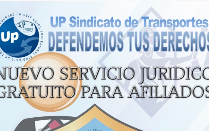 ¡Gratuito para los afiliados/as! Descarga el PDF Nuevo servicio jurídico gratuito UP SINDICATO DE TRANSPORTES, SIEMPRE CONTIGO.
