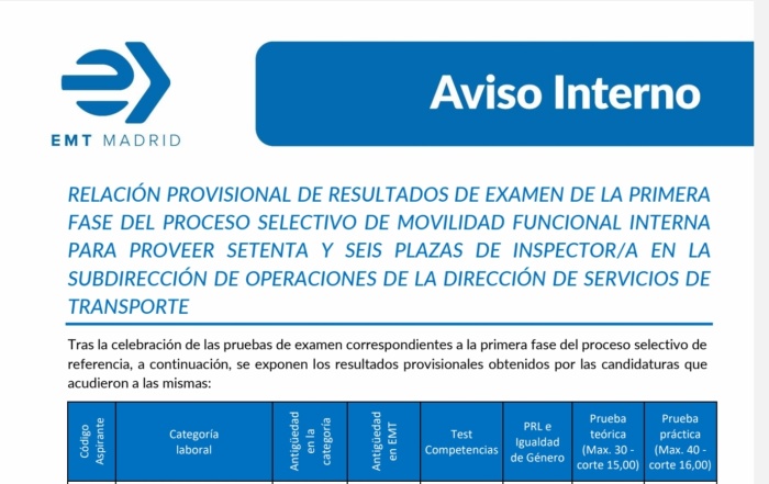Os informamos de las notas provionales de la promoción interna de Inspectores 2024 Descarga el PDF Resultados Provionales Inspectores 08-01-2024 UP SINDICATO DE TRANSPORTES, SIEMPRE ...