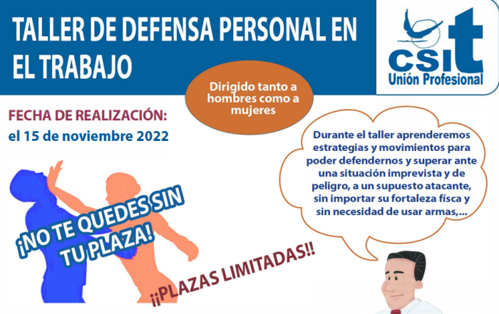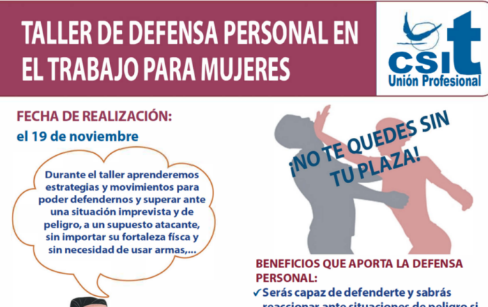 Taller de Defensa Personal en el trabajo, para hombres y mujeres, el día 19 de noviembre de 2022