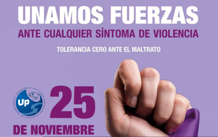 Descarga el PDF Unamos fuerzas, tolerancia cero ante el maltrato 25-11-2022 UP Sindicato de Transportes, más cerca de vosotros.