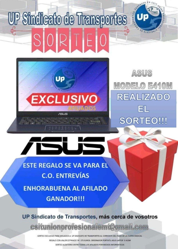 - Sorteo exclusivo para los afiliados a UP Sindicato de Transportes, al corriente de pago de la cuota sindical.