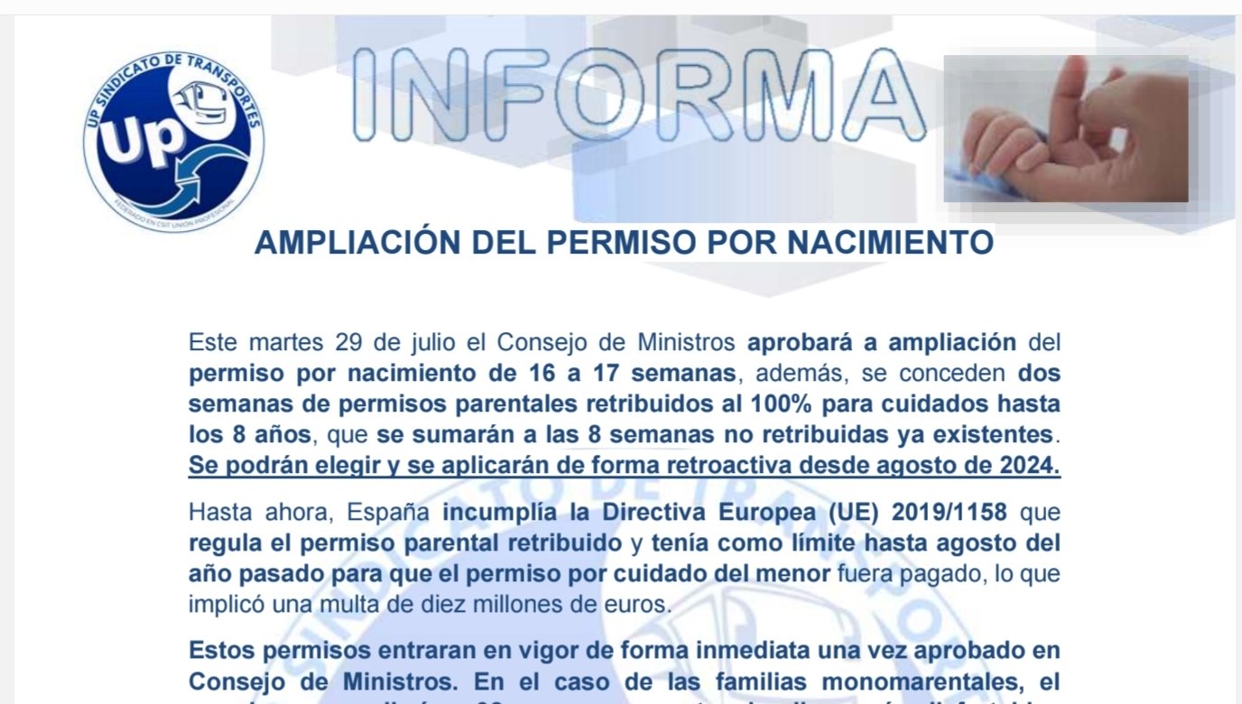 Se amplía en una semana la prestación por nacimiento pasando de 16 a 17 semanas por hijos nacidos a partir de agosto de 2025.