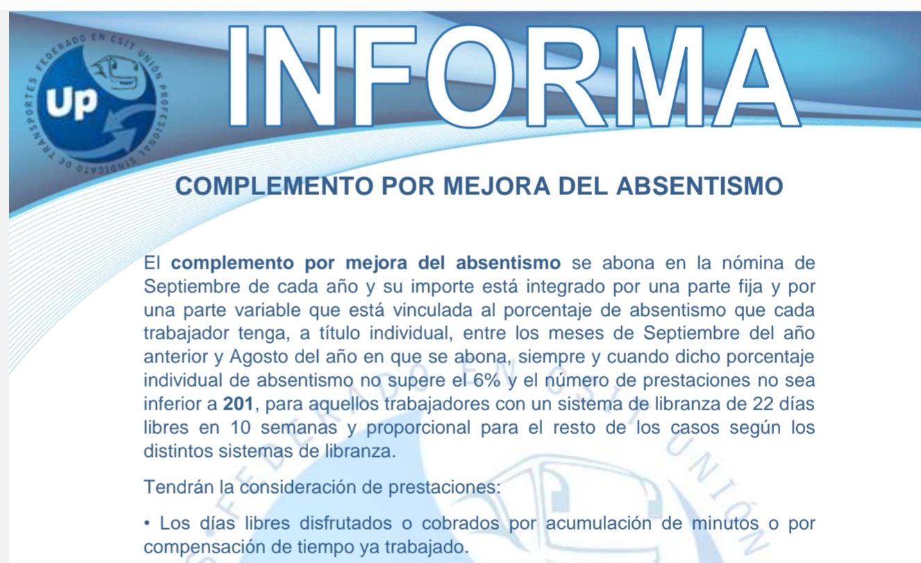 UP INFORMA Complemento por Mejora del Absentismo 2023