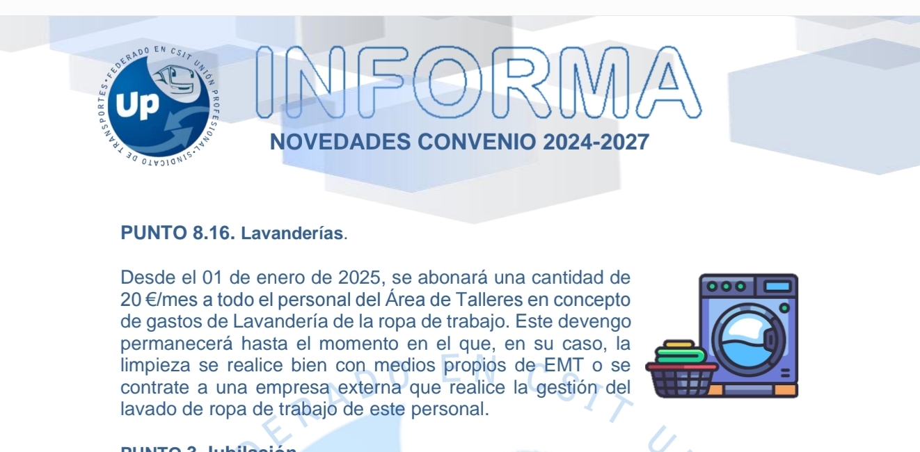 Os informamos sobre el nuevo convenio y novedades como son el servicio de lavandería, la jubilación y la reducción de la jornada laboral.