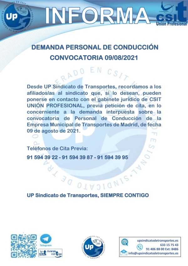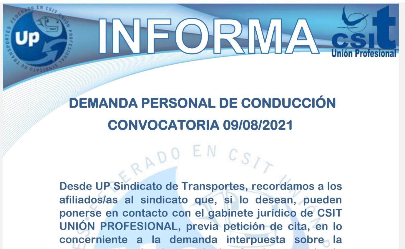 UP INFORMA Demanda Personal Conducción 09-08-2021