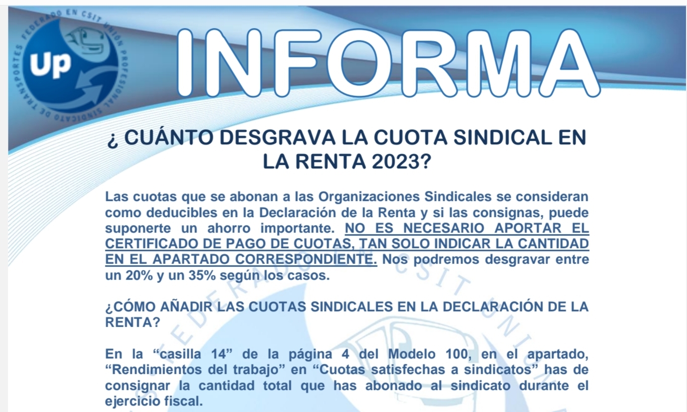 Os informamos de la desgravación en la Renta de las cuotas del sindicato.