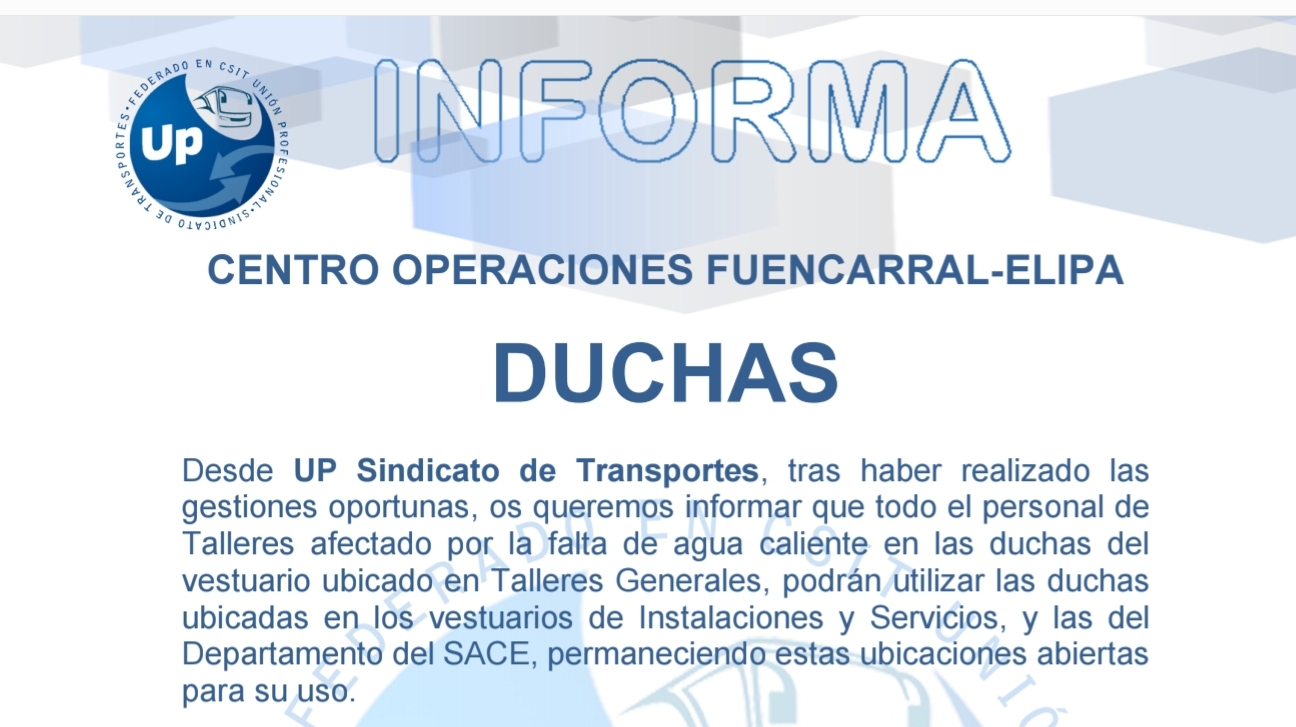 Os informamos de la problemática actual en las duchas del centro de operaciones Fuencarral.