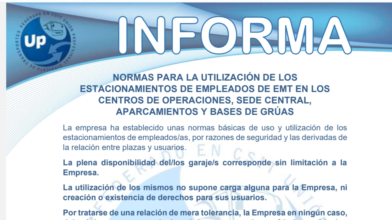 Lectura interesante sobre las normas de utilización de los aparcamientos de la EMT de Madrid para los empleados.