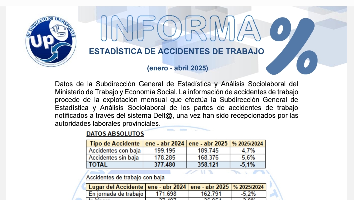 Os informamos sobre las estadísticas en los accidentes de trabajo desde enero a abril de 2025.