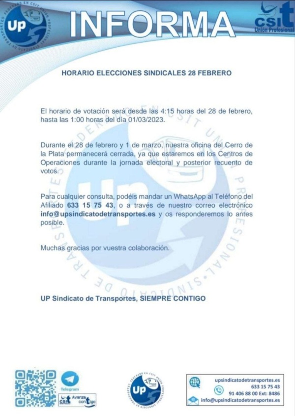 UP INFORMA Horario elecciones sindicales 28-02-23