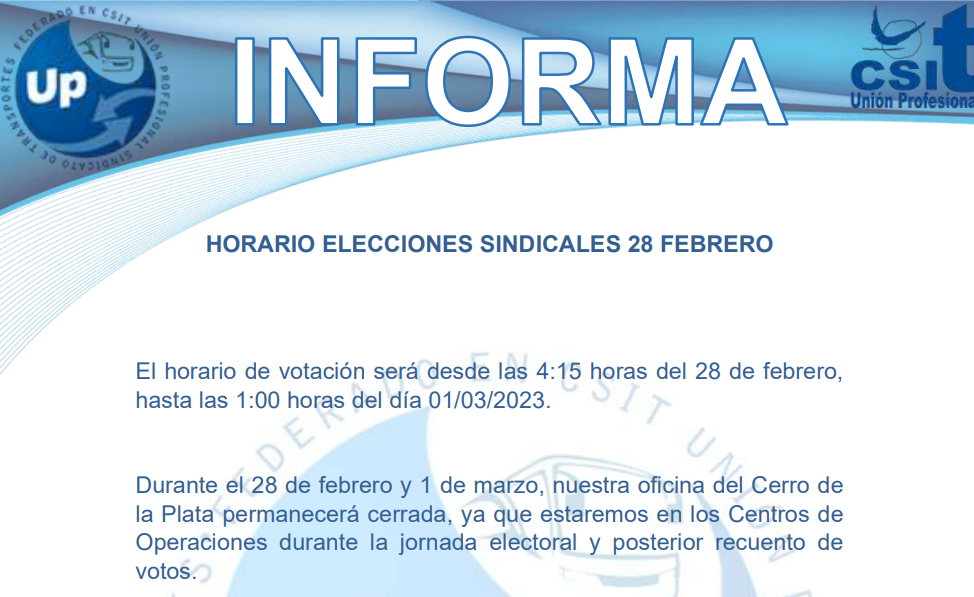 UP INFORMA Horario elecciones sindicales 28-02-23