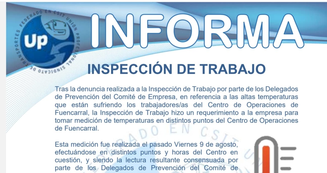 UP Informa Inspección de trabajo Temperaturas CO Fuencarral