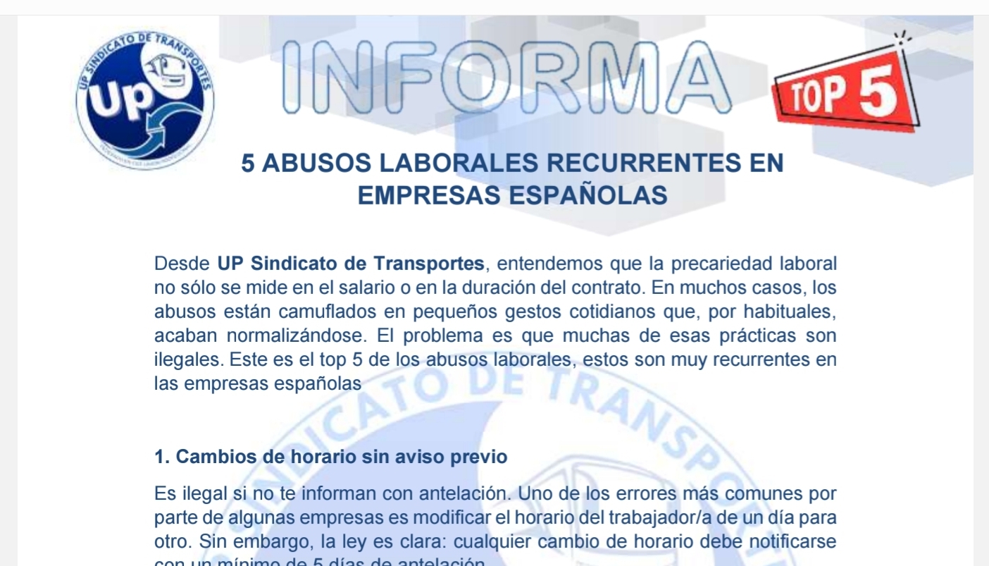 Los cinco abusos laborales mas recurrentes en las empresas españolas.