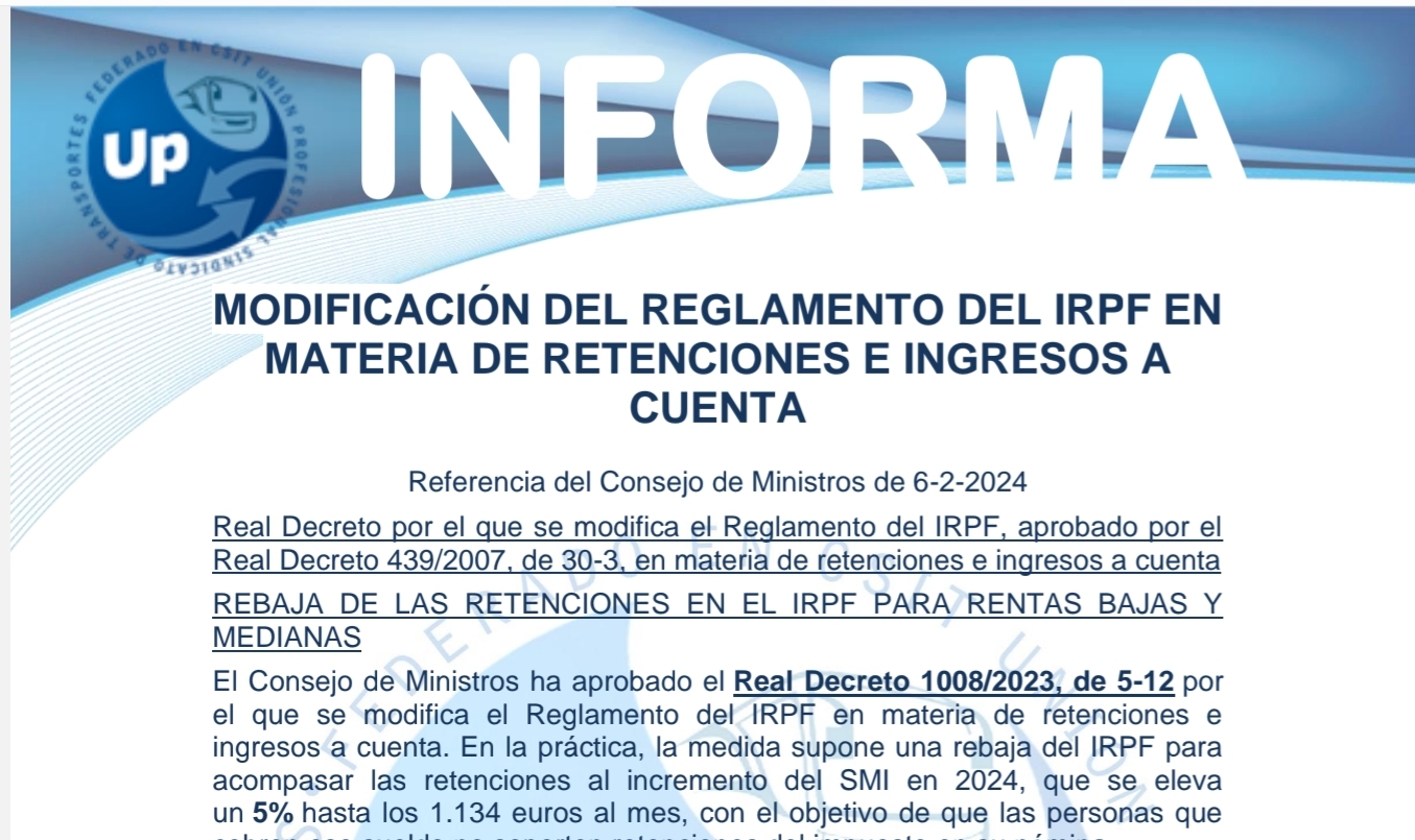 UP INFORMA Modif Rto IRPF Retenc e Ingresos a cuenta