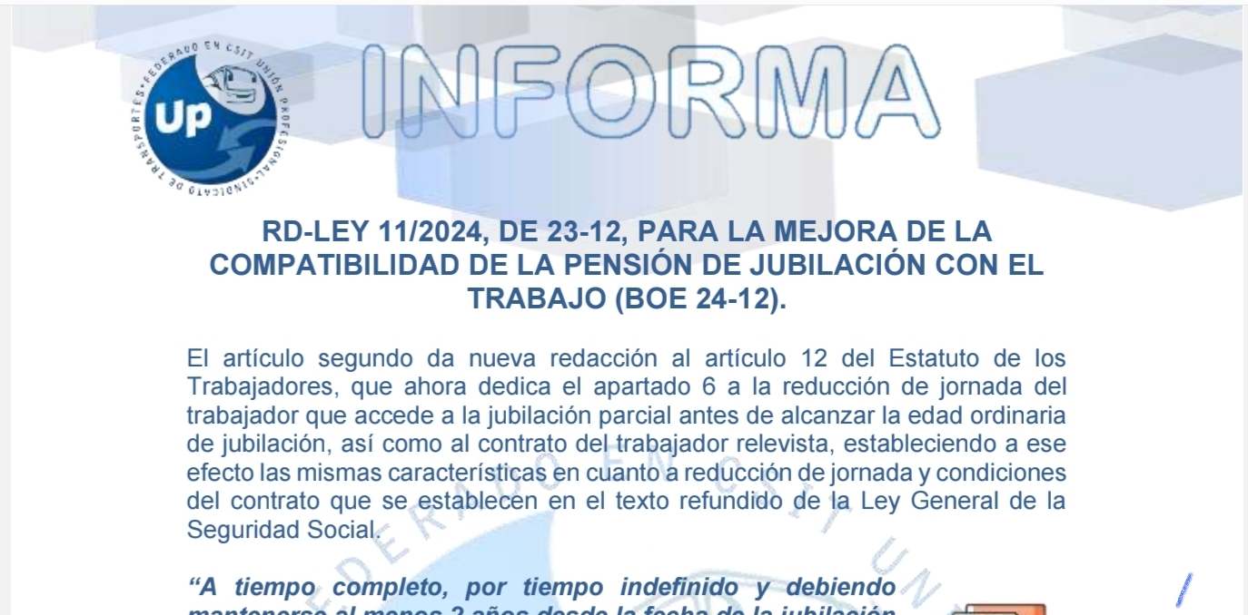 Os contamos la modificación del Real Decreto 11-2024, de 23-12, para la «mejora de la compatibilidad de la pensión de jubilación con el trabajo».