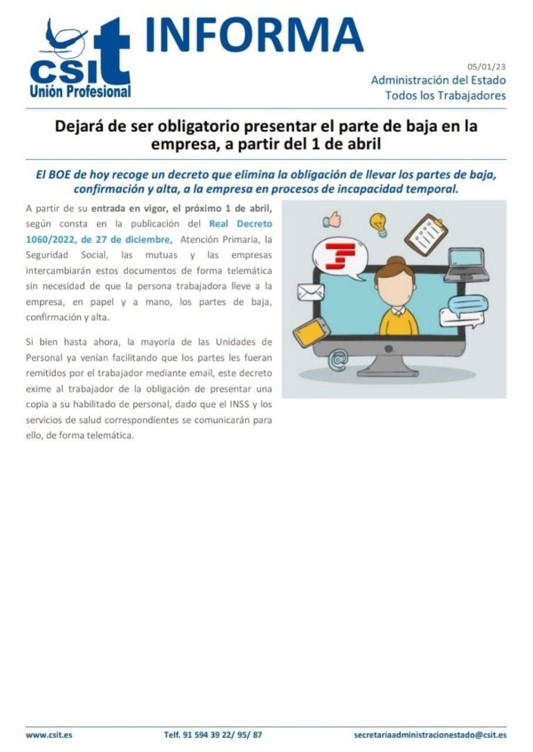 No será obligatorio presentar el parte de baja a partir del 1 de abril 2023