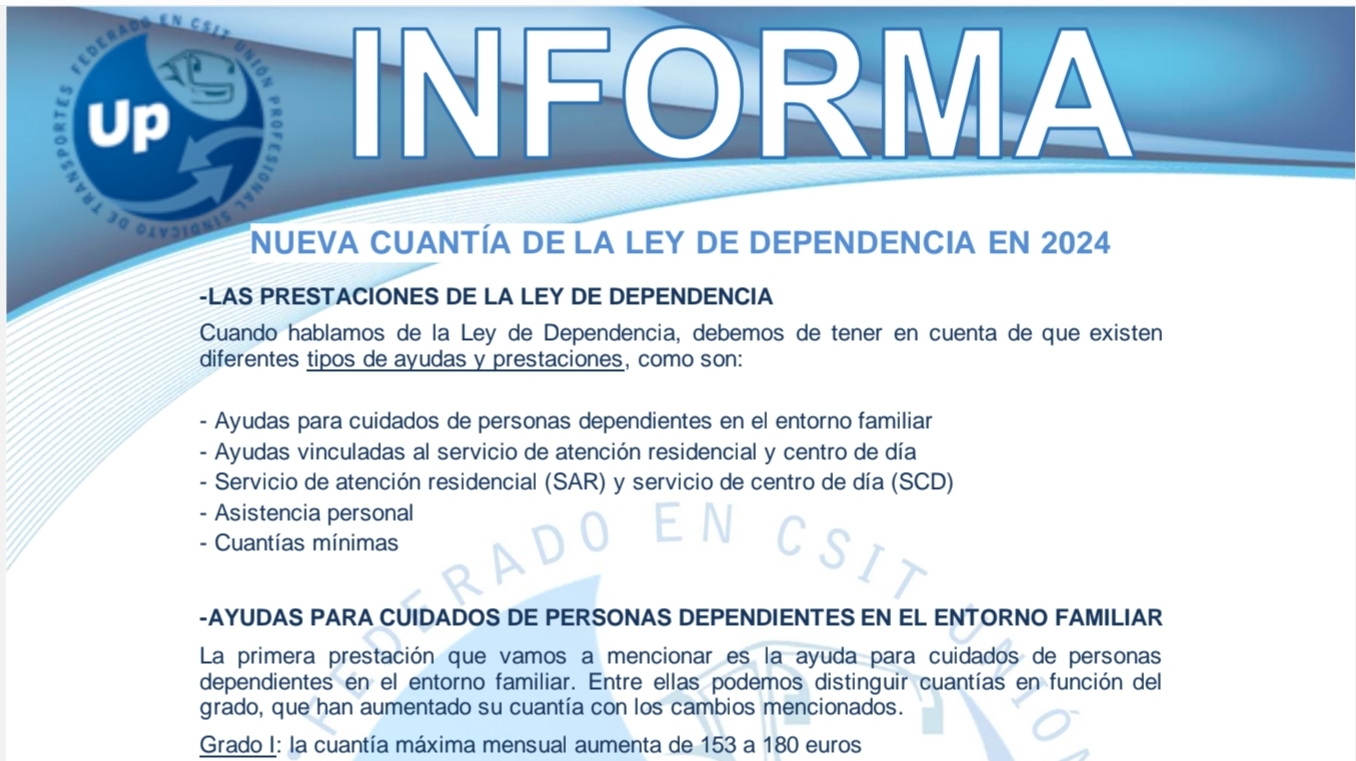 UP INFORMA NUEVA CUANTÍA DE LA LEY DE DEPENDENCIA EN 2024