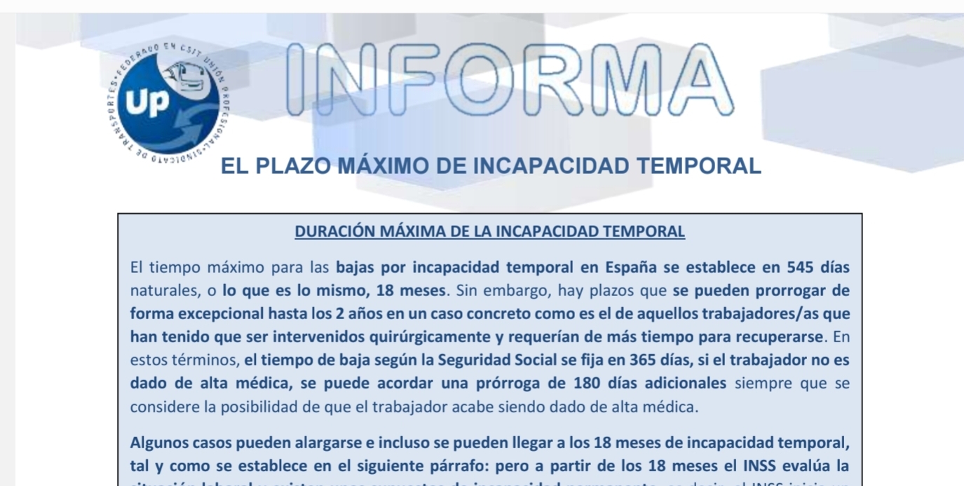 UP INFORMA Plazo máximo Inacapacidad temporal