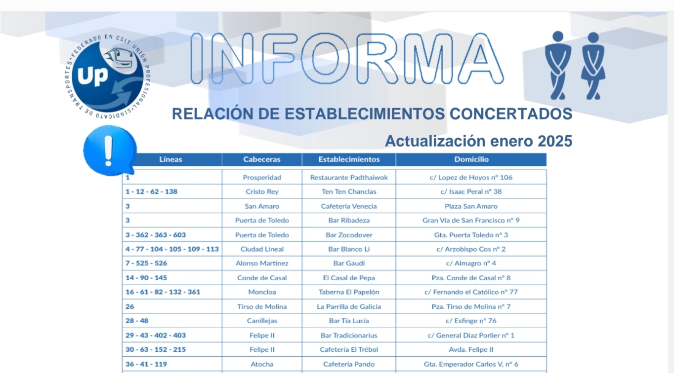 Actualizamos el listado de los establecimientos concertados, por lo cual se puede hacer uso del baño del establecimiento.