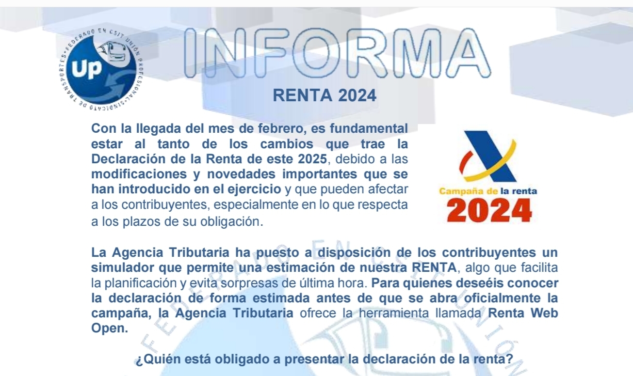 Recordad que dentro de poco se realiza la declaración de la Renta 2024, si eres afiliado será gratuito. Más información en el PDF.
