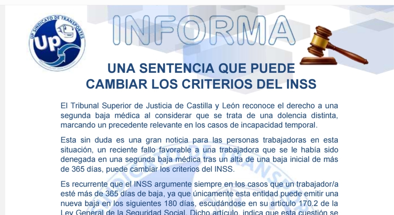Sentencia sobre los criterio del INSS en las bajas médicas.