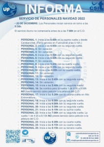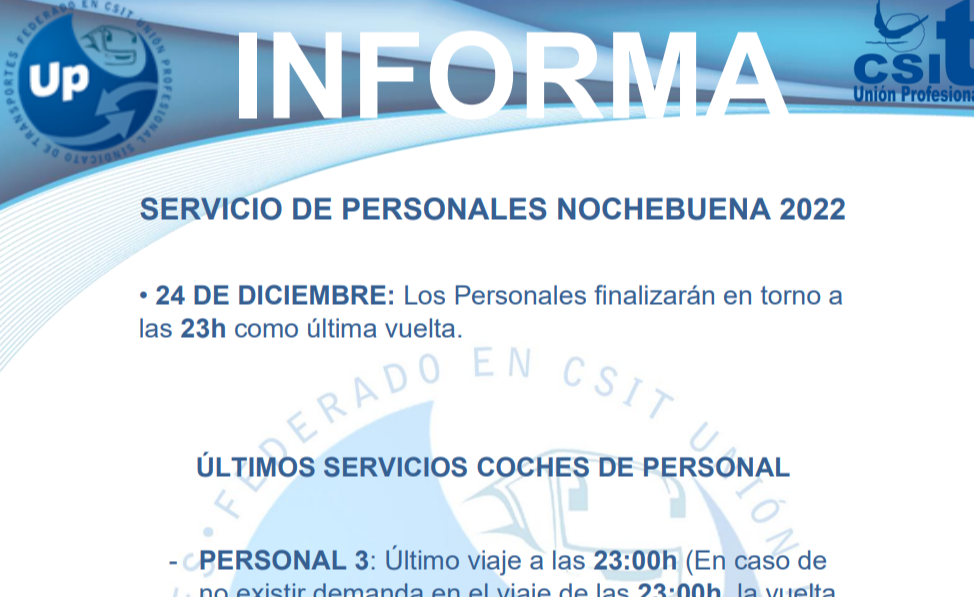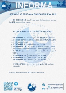 Os informamos de los horarios especiales de los Personales para los días 24 y 25 de diciembre 2022. ¡ Feliz Navidad !