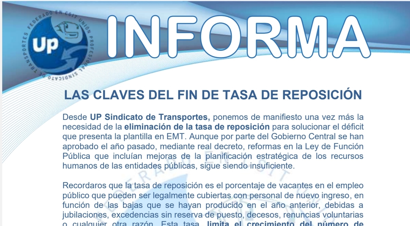 Os informamos de la problemática existente en la Tasa de Reposición en la EMT de Madrid.