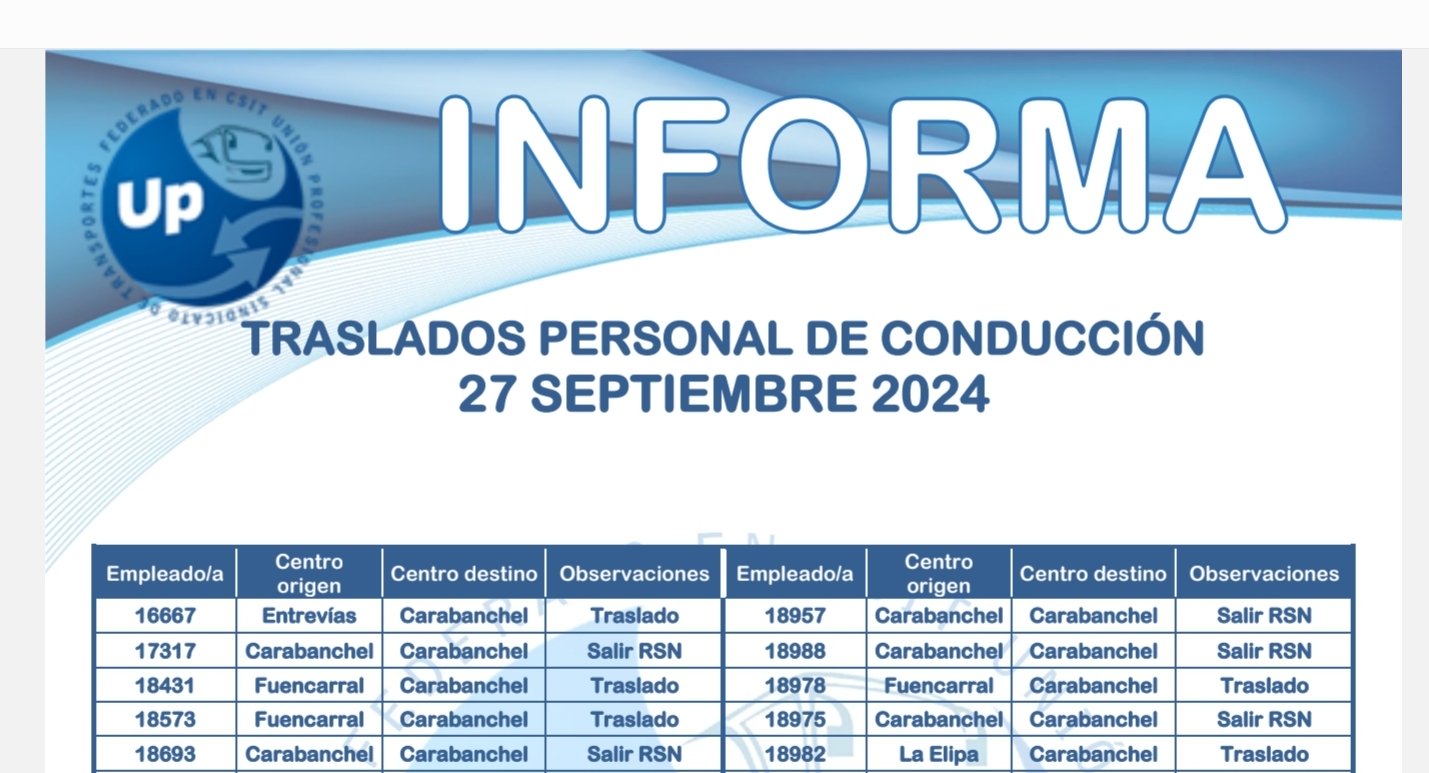 UP INFORMA Traslados Personal Conducción 27-09-24