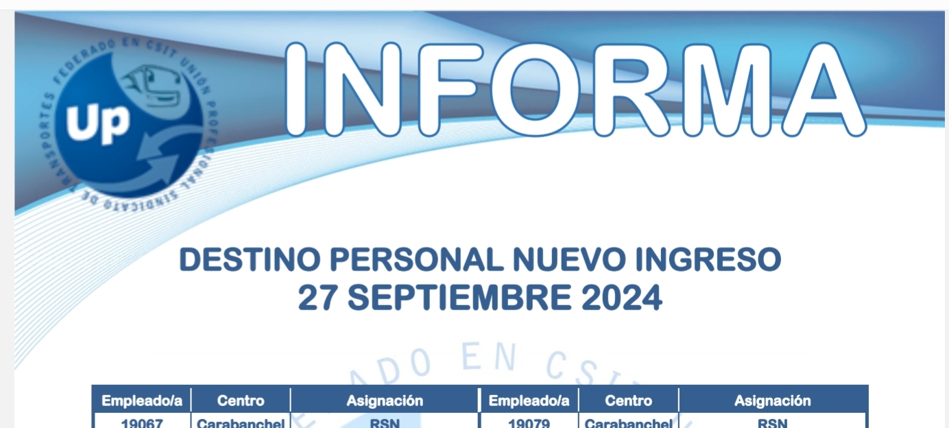 UP INFORMA Traslados Personal Nuevo Ingreso 27-09-2024