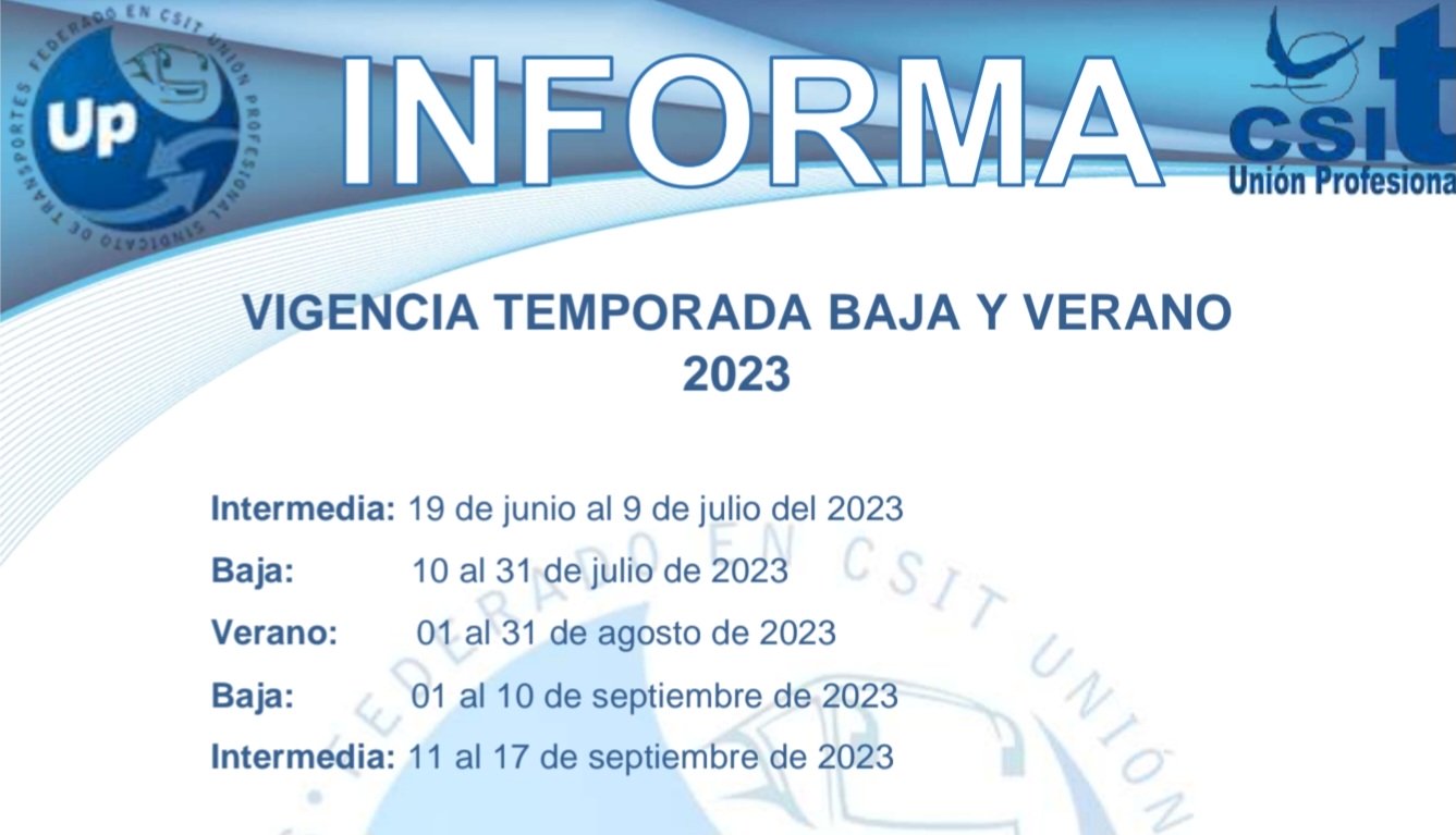 Os informamos del calendario de las temporadas «Baja y Verano» de 2023