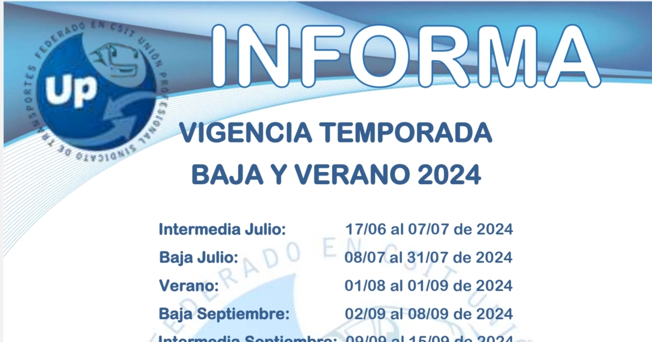 Os informamos de las vigencias de los cuadros intermedio, baja y verano.